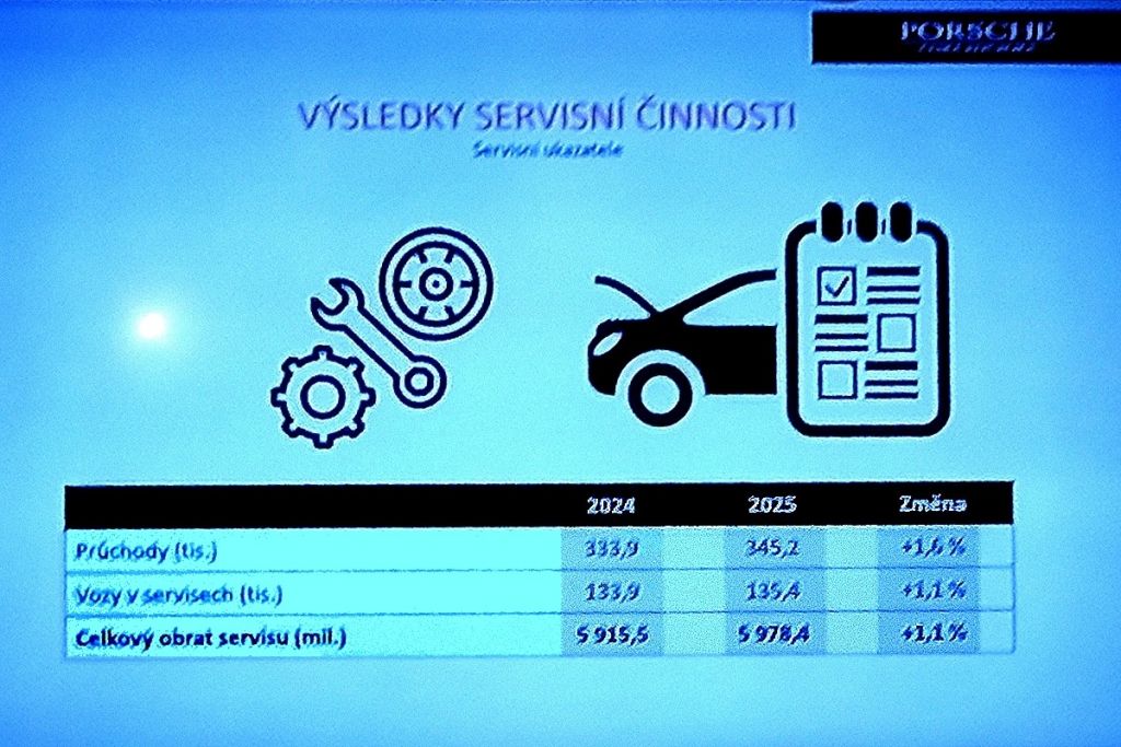 Mezi základní pilíře dlouhodobého úspěchu společnosti Porsche Česká republika patří profesionální servisní a poprodejní služby, které hrají klíčovou roli při zajišťování vysoké úrovně spokojenosti a loajality zákazníků. V divizi After Sales se celkový obrat servisu meziročně zvýšil o 1,1 % na 5,98 mld. Kč. Stejným tempem vzrostl počet vozů v servisech na 135 000.