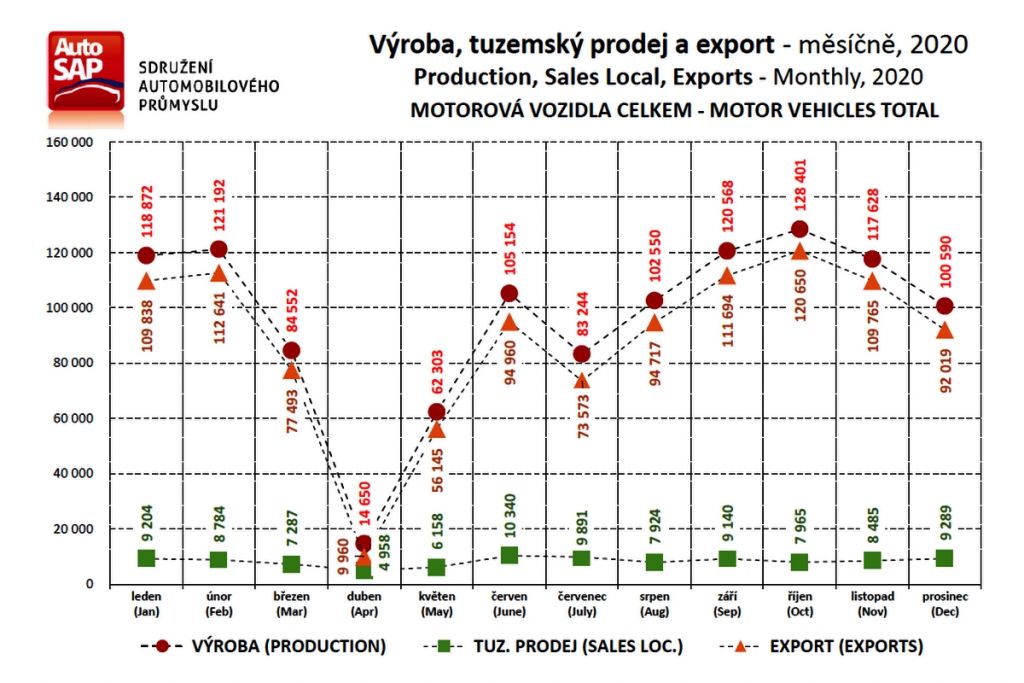 V roce 2020 bylo opět vyrobeno přes milion silničních vozidel