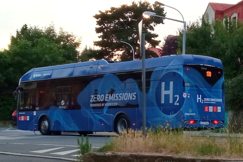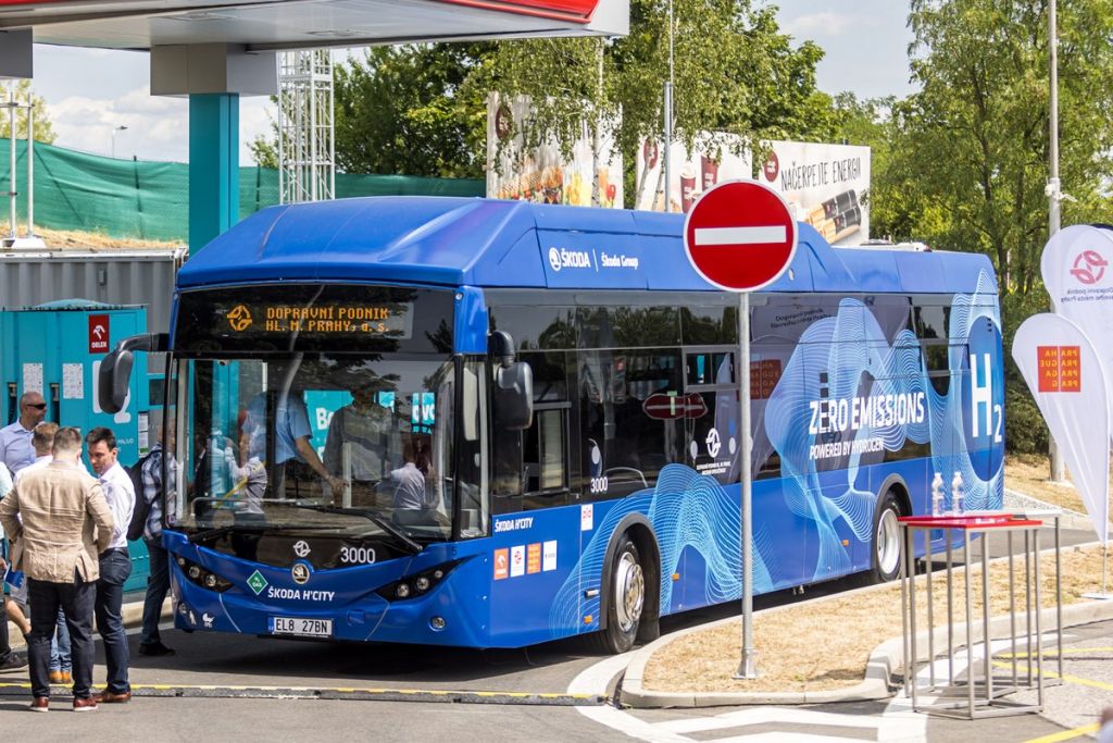 Autobus na vodík Škoda H’City v ulicích Prahy
