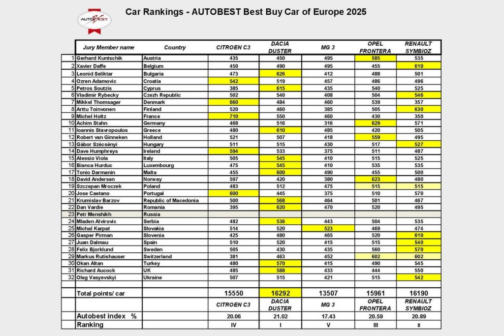 Dacia Duster získává ocenění AutoBest-Best Buy Car of Europe in 2025